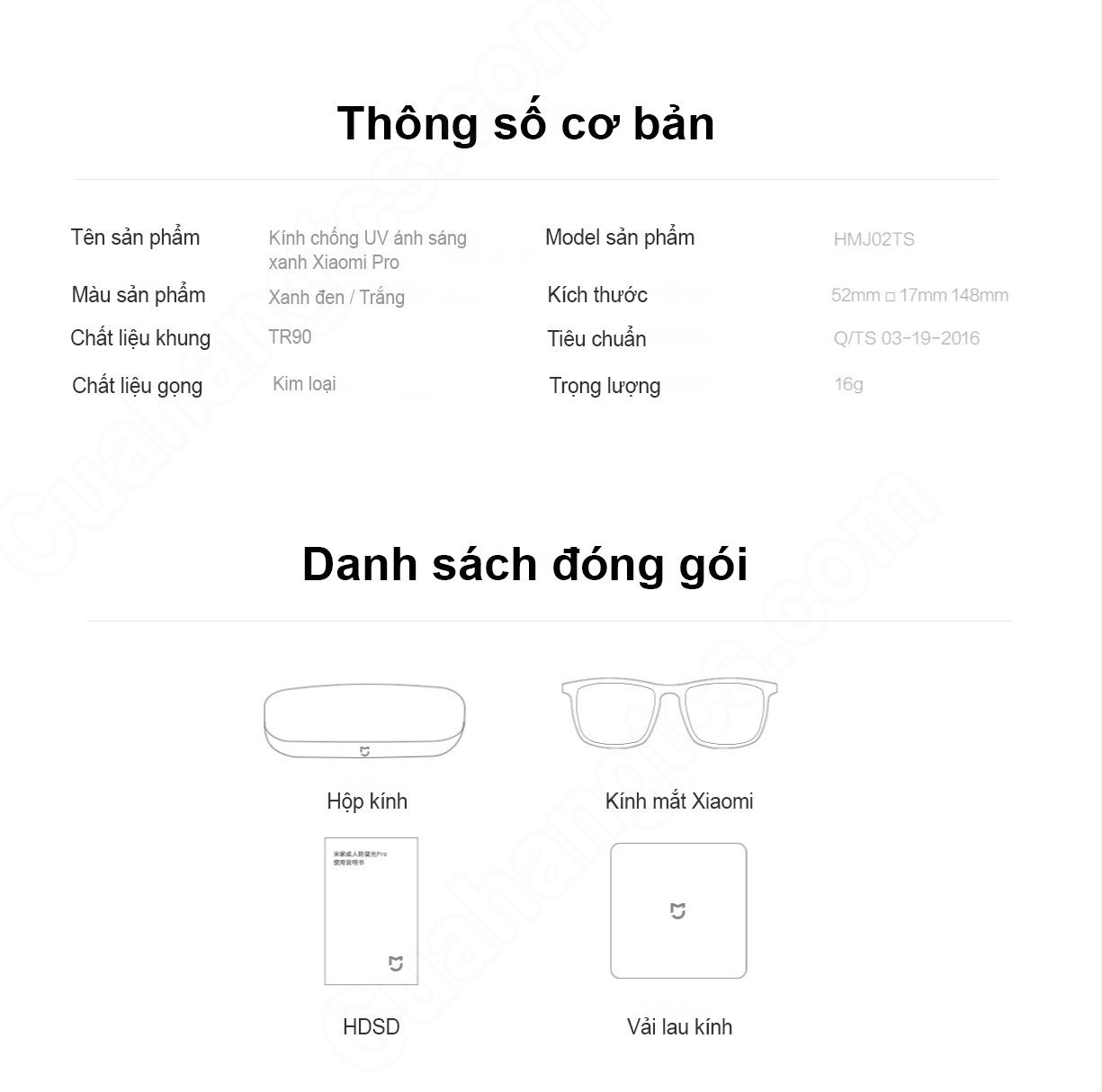Thông số sản phẩm Kính chống UV ánh sáng xanh Xiaomi Pro