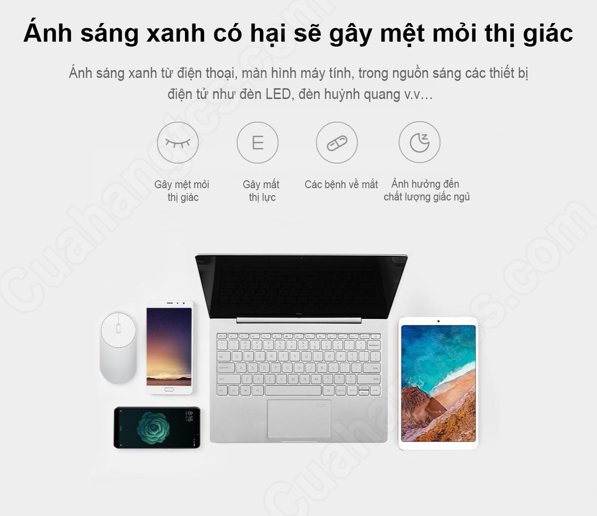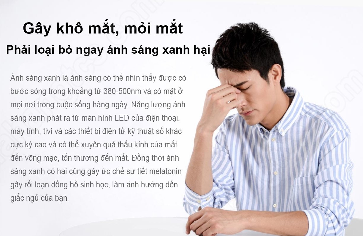 ✔ Ngăn chặn ánh sáng xanh có hại, ngăn ngừa và phòng tránh các bệnh về mắt, ảnh hưởng tới đồng hồ sinh học, giấc ngủ của bạn..