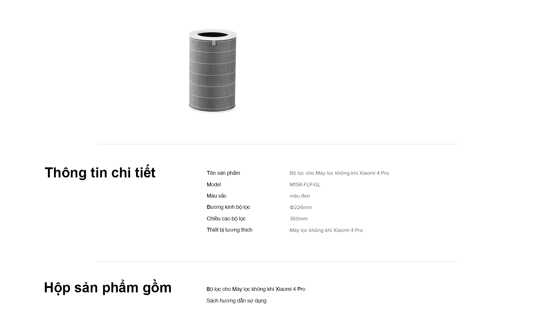 Mi Smart Air Purifier 4 Pro Filter BHR5062GL có model M15R-FLP-GL là lõi lọc thay thế dành riêng cho máy lọc Xiaomi 4 Pro, là lõi lọc chính hãng, sử dụng thay thế theo chu kỳ 6 đến 8 tháng 1 lần.