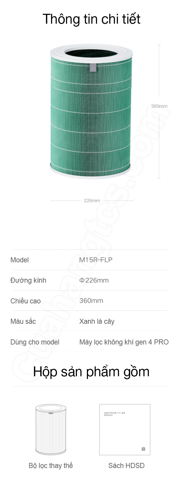 Mi Smart Air Purifier 4 Pro Filter BHR5109CN có model M15R-FLP là lõi lọc thay thế dành riêng cho máy lọc Xiaomi 4 Pro, là lõi lọc chính hãng, sử dụng thay thế theo chu kỳ 6 đến 8 tháng 1 lần.