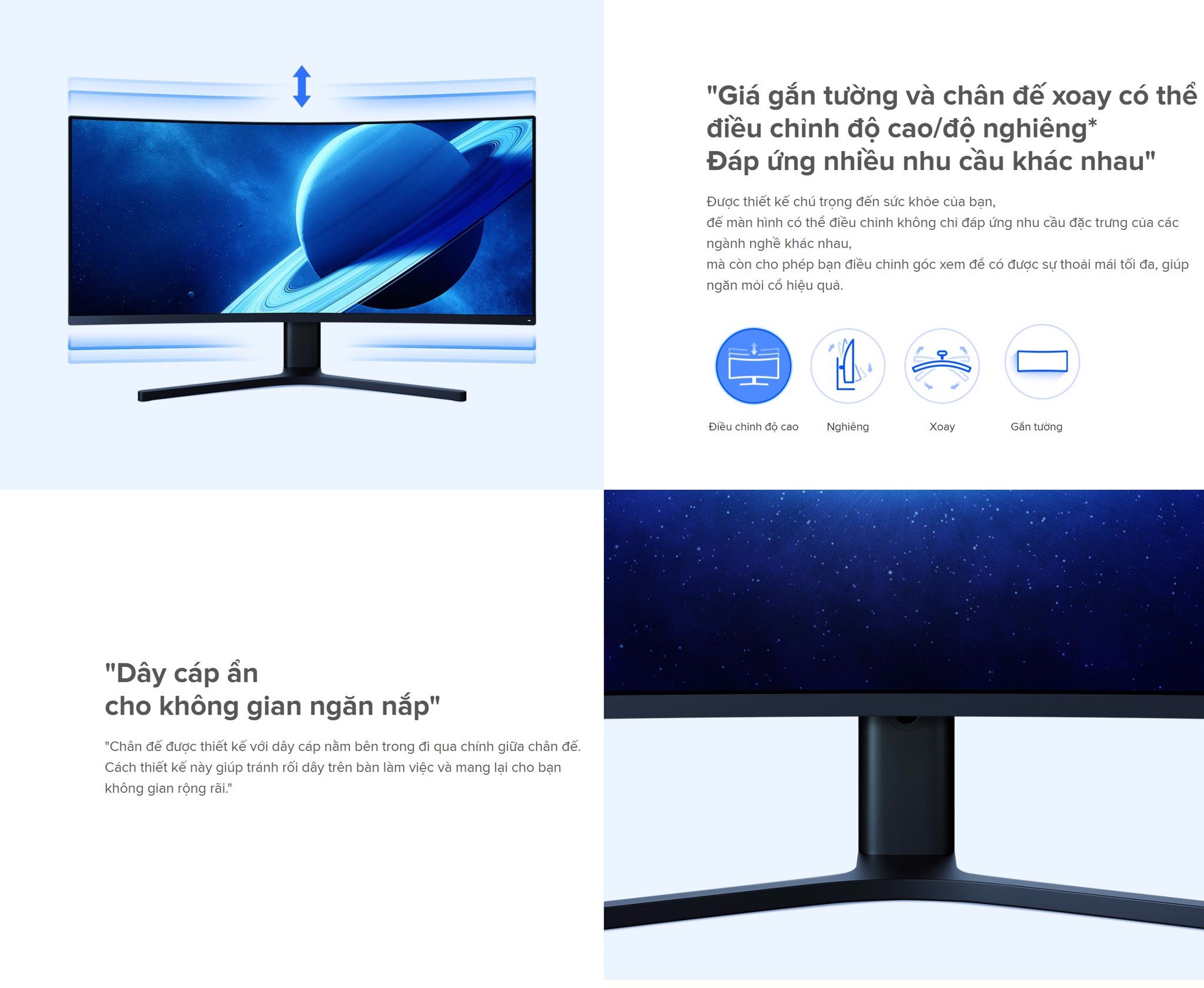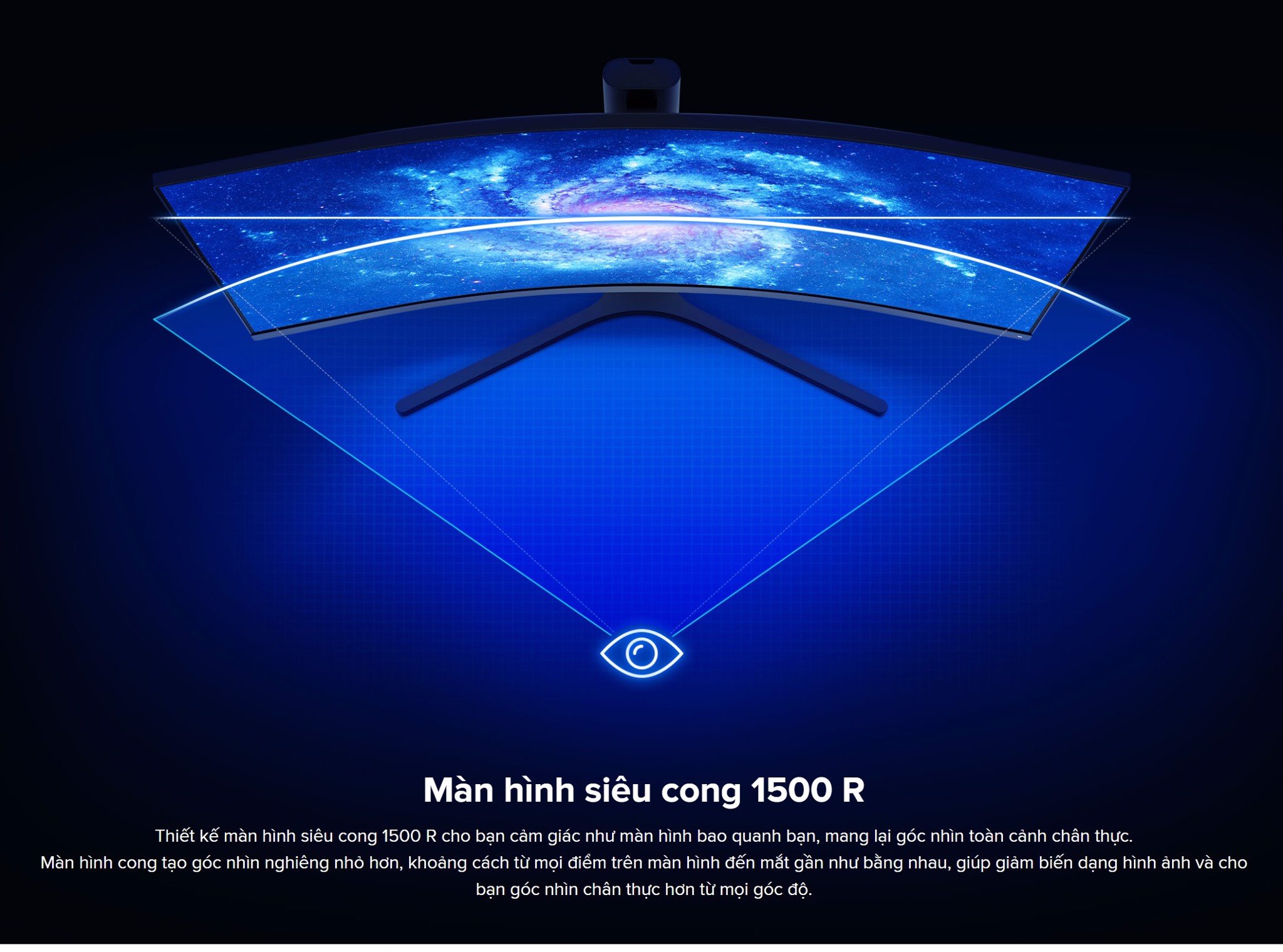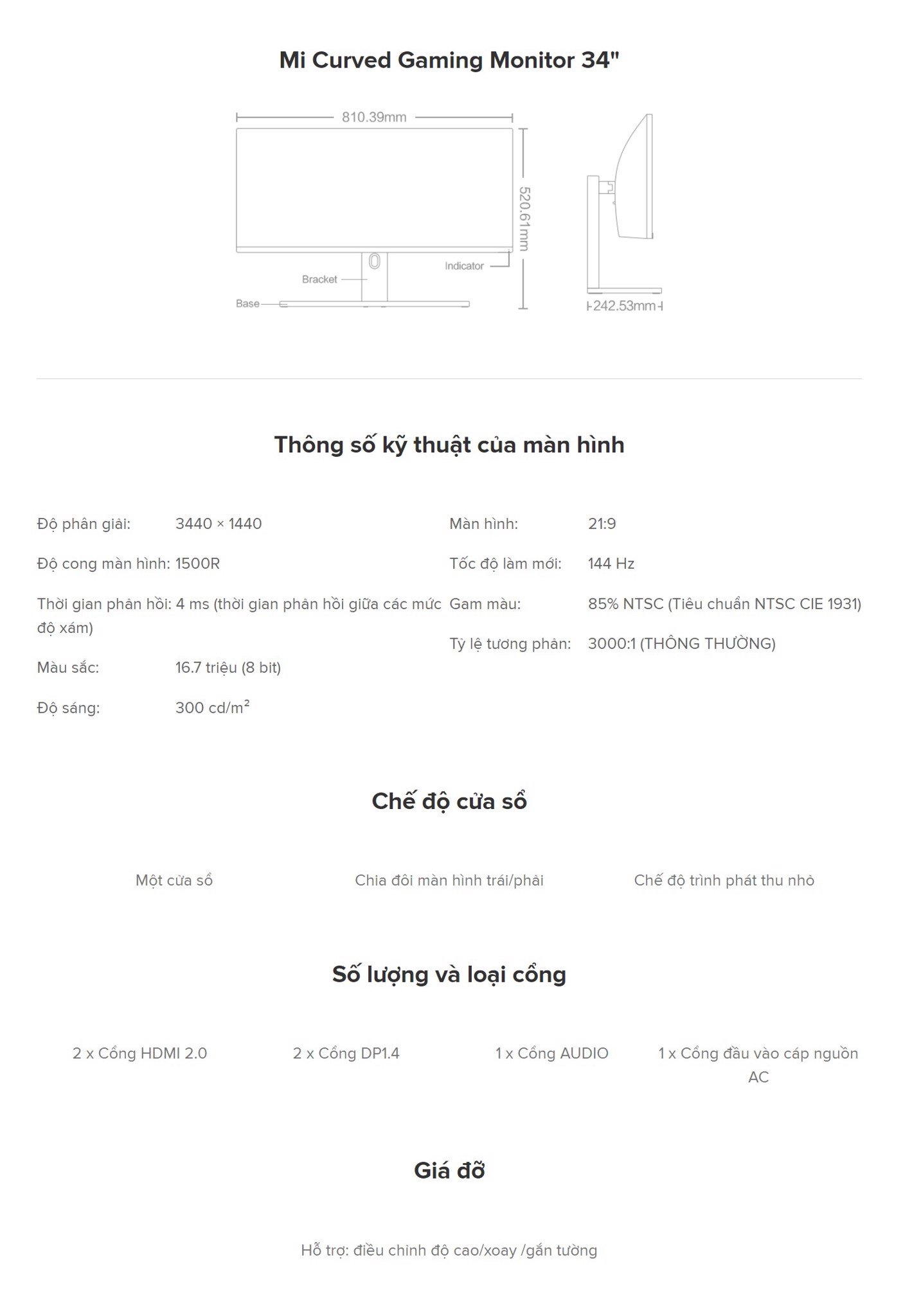 Màn hình Xiaomi Mi Gaming Monitor 34 inch quốc tế với thiết kế độ cong lên đến 1500R, tần số quét 144hz, độ nét cao 3440x1440p, tỉ lệ màn hình WQHD 21:9, công nghệ chống xé hình cao cấp free sync premium