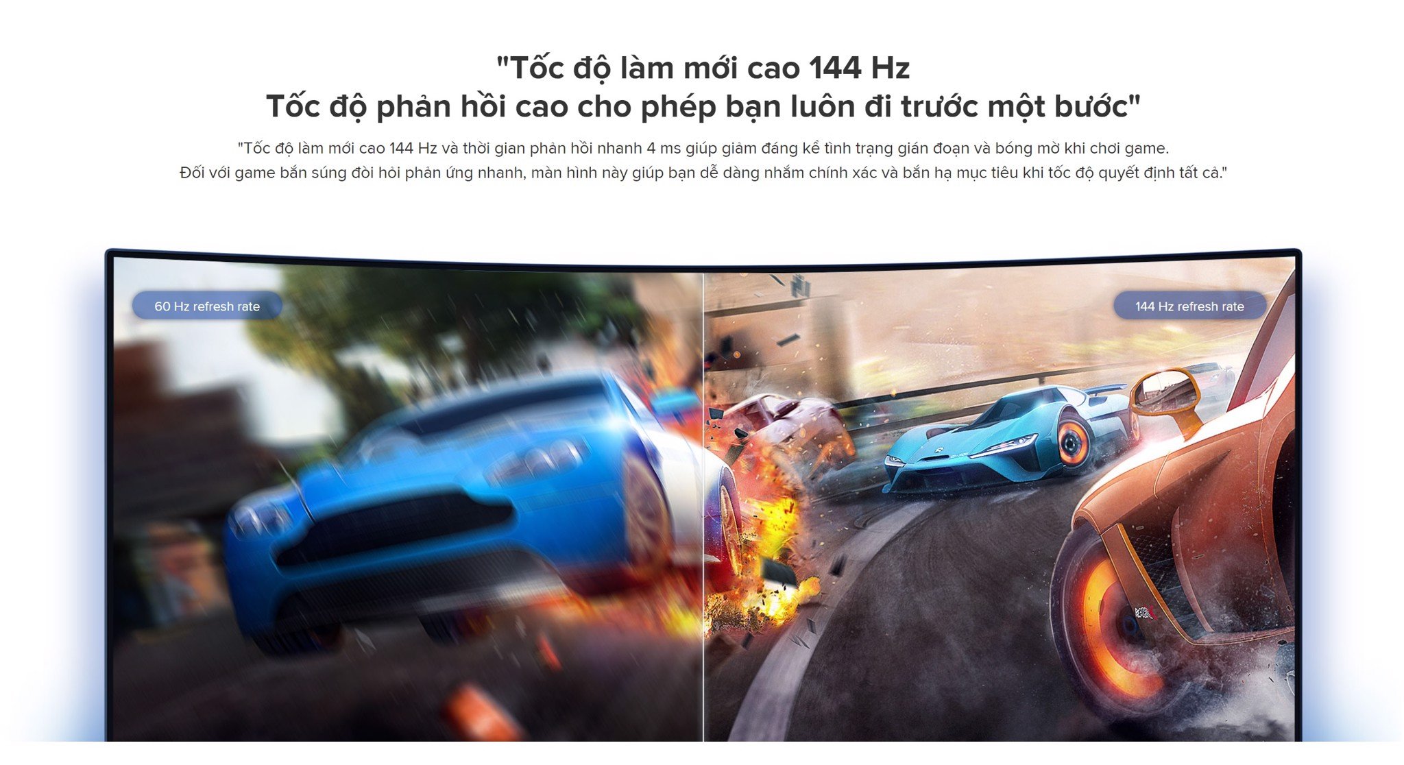 Tần số quét 144Hz cao và thời gian phản hồi 4ms giúp giảm hiện tượng giật hình và bóng ma trong các trò chơi một cách hiệu quả. Trong các trò chơi bắn súng yêu cầu phản ứng nhanh, điều này giúp bạn dễ dàng khóa và bắn trúng mục tiêu một cách chính xác hơn và dễ dàng chiến thắng.