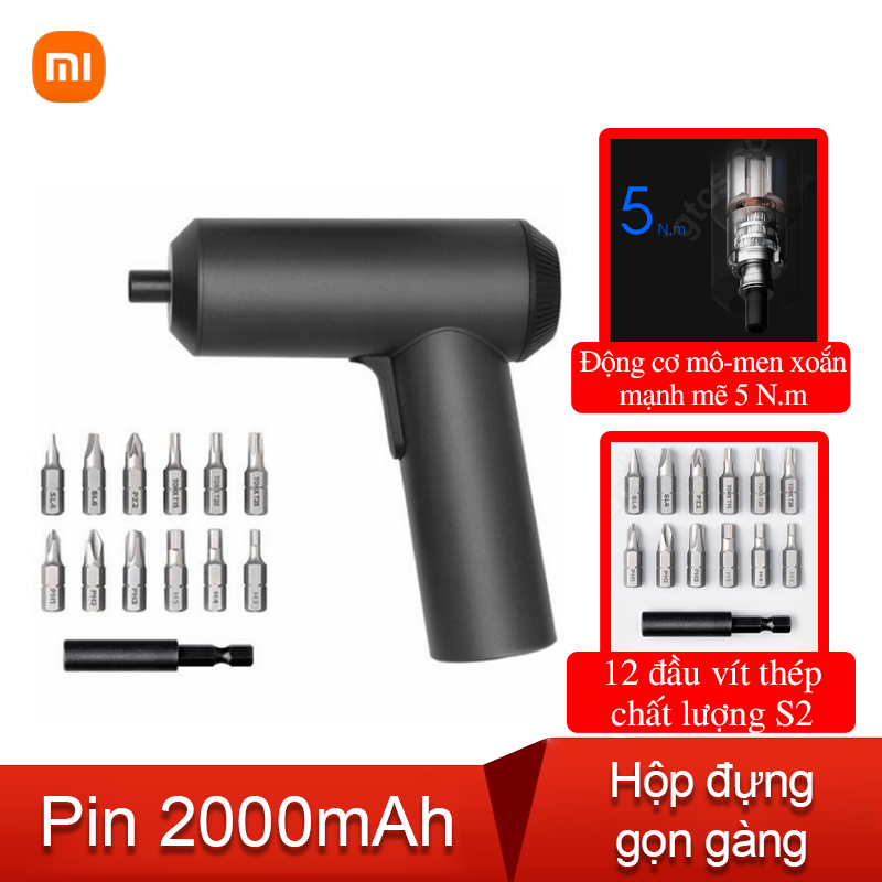 Máy bắn vít điện cầm tay Xiaomi Mijia kèm 12 đầu vít cao cấp 3.6v MJDDLSD001WQ, thiết kế đơn giản mà tinh tế, có 12 đầu vít thép S2 chất lượng cao, pin dung lượng lớn với 2000mAh…