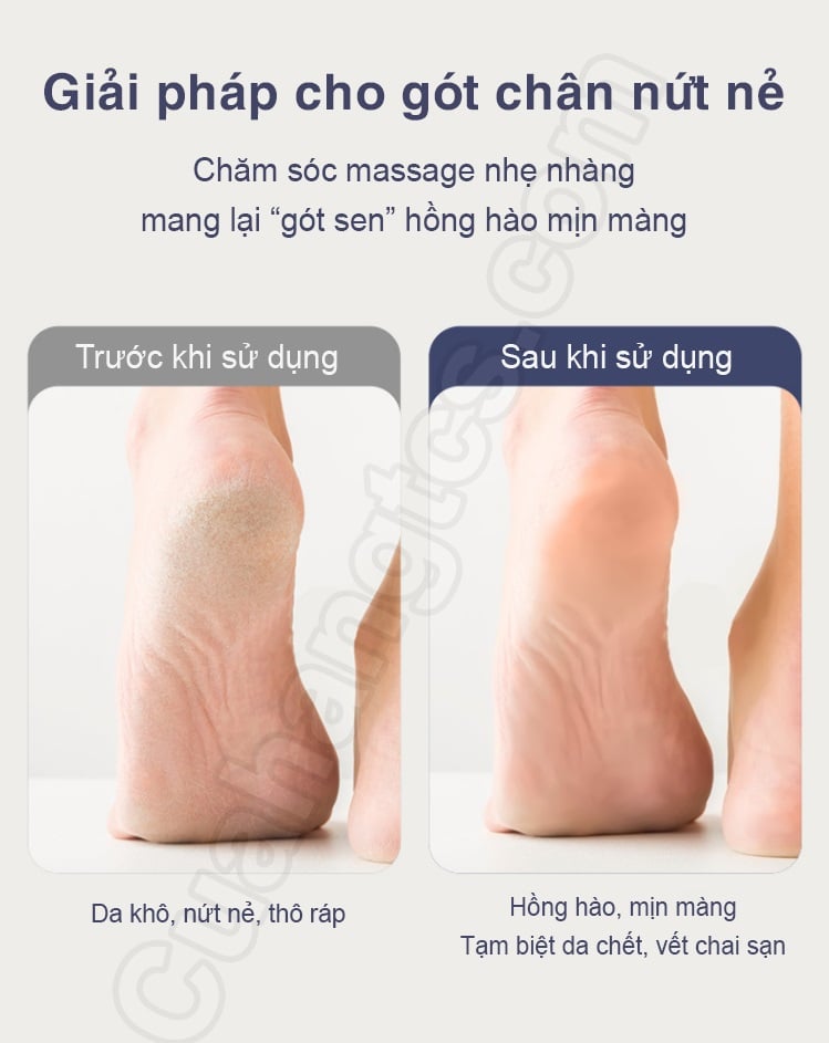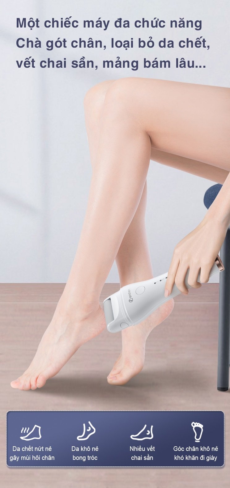 Máy chà gót chân là một dụng cụ chăm sóc, làm đẹp được rất nhiều người lựa chọn hiện nay nhất là chị em phụ nữ hay đi giày cao gót, người vận động thường xuyên hay người cơ địa da chân sần sùi, khô ráp,…Thiết bị giúp loại bỏ đi các vết chai sần, phần da khô ráp, tế bào chết,… ở vùng da gót chân, trả lại một làn da chân mềm mại, mịn màng và căng bóng.