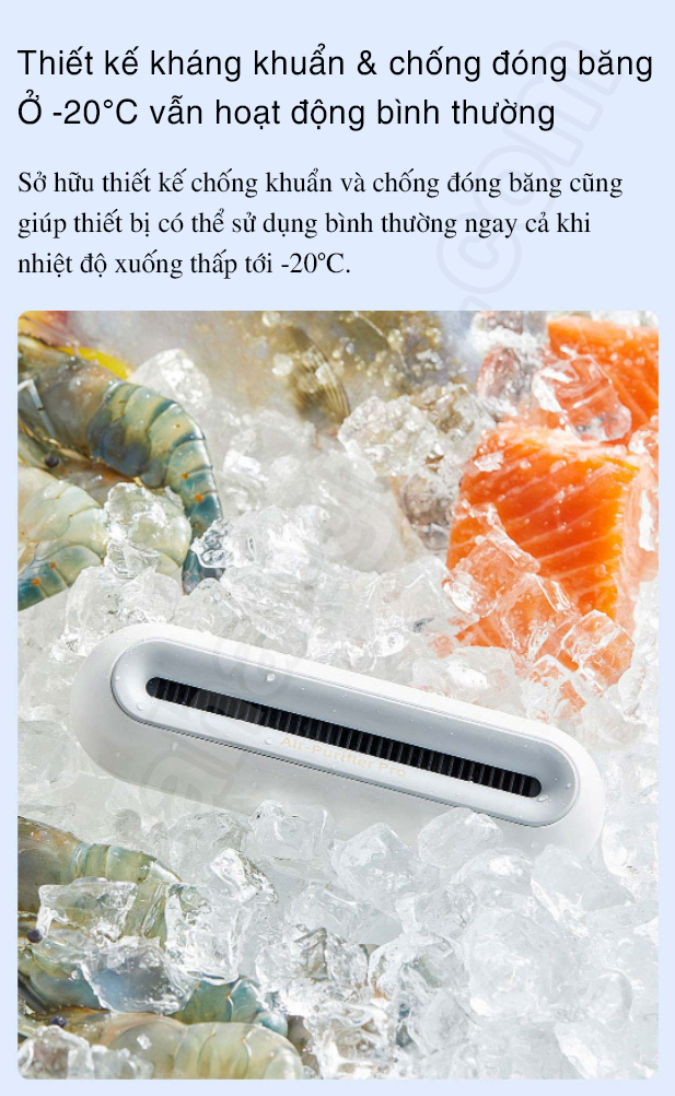 Máy khử mùi EraClean CW-BS01 sở hữu thiết kế chống khuẩn và chống đóng băng cũng giúp thiết bị có thể sử dụng bình thường ngay cả khi nhiệt độ xuống thấp dưới -20°C. Bên cạnh khả năng khử trùng – khử mùi cho tủ lạnh, người dùng còn có thể sử dụng máy để khử trùng cho góc phòng, không gian nhỏ, ngăn tủ quần áo, xe hơi, tủ giày hay khử trùng đồ chơi cho bé,…