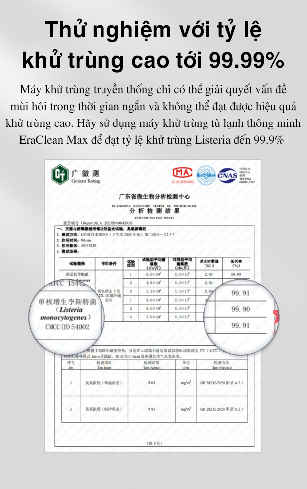Mặt khác, các chất khử mùi truyền thống thường chỉ có thể giải quyết vấn đề mùi đặc biệt trong khoảng thời gian ngắn và về cơ bản nó không thể loại bỏ được vi khuẩn. Chính vì vậy, việc sử dụng Máy khử mùi CW-BS01 EraClean tối đa 90 phút sẽ giúp tiêu diệt đến 99.9% vi khuẩn Listeria.