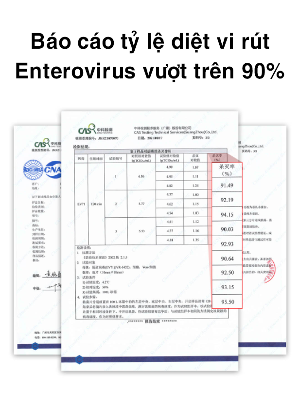 Khả năng diệt khuẩn đến 99.9%