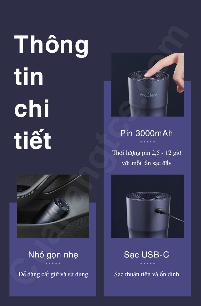 Máy lọc không khí khử mùi ô tô Xiaomi Eraclean CW-C02 – Tech1 Store