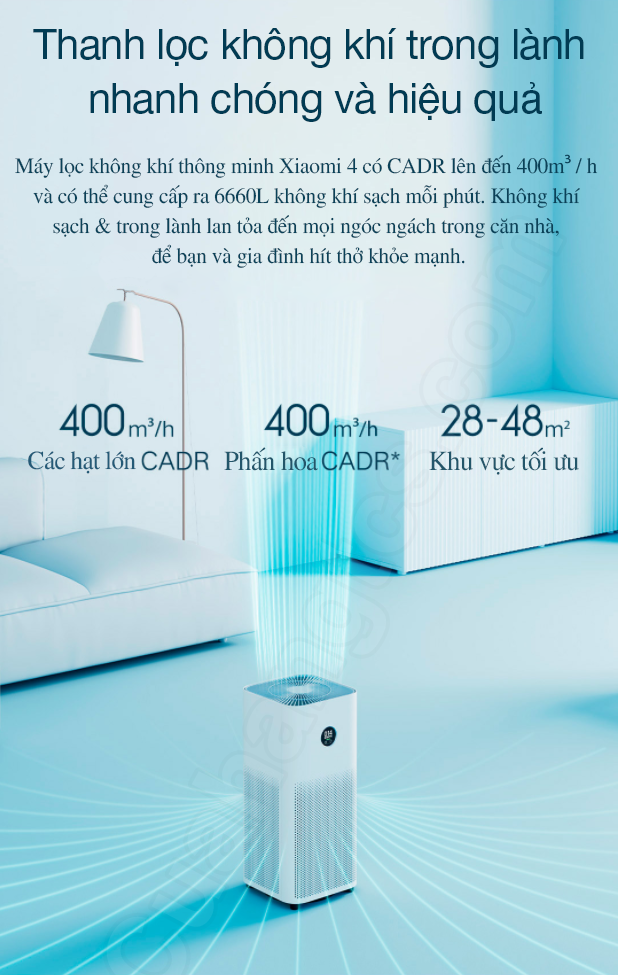 Máy lọc không khí thông minh Mi Air Purifier 4 BHR5096GL Quốc Tế có model AC-M16-SC là sản phẩm giúp nâng cao chất lượng không khí cho gia đình, phù hợp với phòng 28-48m², sản phẩm có khả năng loại bỏ bụi mịn PM2.5, lọc mùi với tiêu chuẩn quốc tế, giải phóng ion âm, khả năng quản lý bằng ứng dụng Mi Home có tiếng việt…
