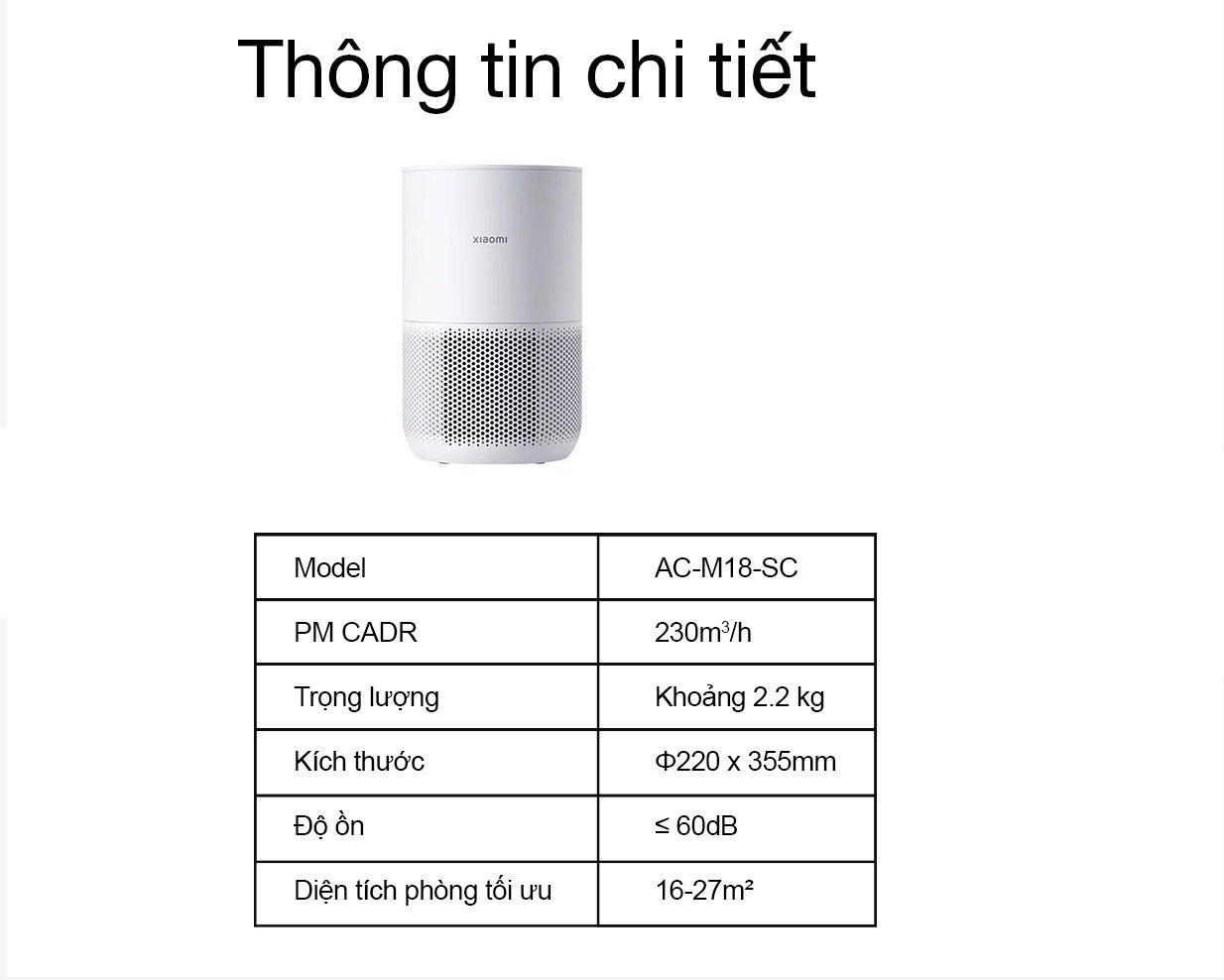 Máy lọc không khí Xiaomi Mi Air Purifier 4 Compact BHR5860EU Quốc Tế