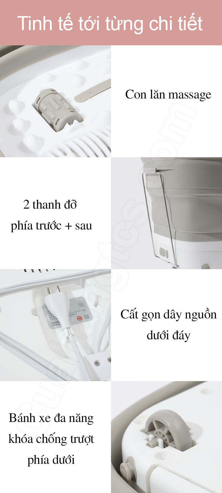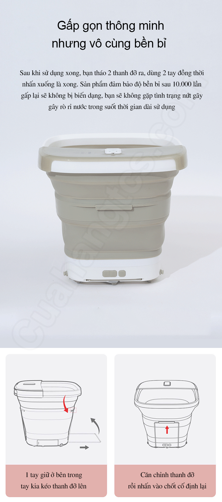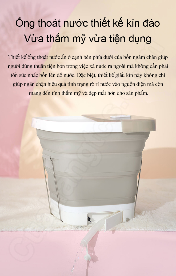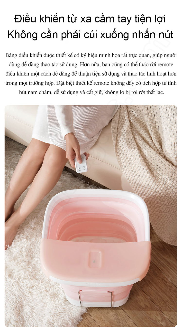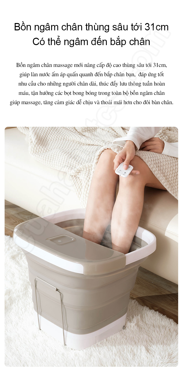Ngoài ra, công nghệ đúc liền mạch, hoàn thiện với chất liệu cao cấp giúp bồn ngâm có độ bền cao, không bị biến dạng qua hơn 10000 lần gập mở. Hơn nữa, thiết kế gấp gọn tiện dụng này còn giúp người dùng thuận tiện mang theo máy sử dụng trong những chuyến đi du lịch, công tác xa.