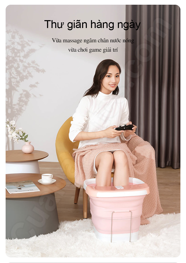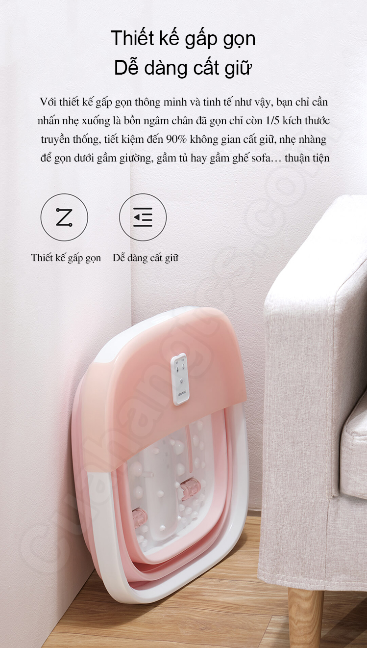 Một ưu điểm nổi bật đáng chú ý trên thiết kế của Chậu ngâm chân massage LJF001 Leravan chính là kết cấu không gian mở rộng, khả năng gấp gọn linh hoạt, hỗ trợ người dùng lưu trữ dễ dàng và thuận tiện hơn. Cụ thể, chỉ với 1 thao tác ấn nhẹ là bạn đã có thể thu gọn chiếc bồn ngâm chân lại với kích thước giảm chỉ bằng 1/5 so với bồn ngâm chân truyền thống. Do đó sau mỗi lần sử dụng, bạn sẽ dễ dàng cất giữ thiết bị ở gầm giường, ghế sofa, tủ quần áo,… mà không gặp bất kỳ sự vướng víu nào.