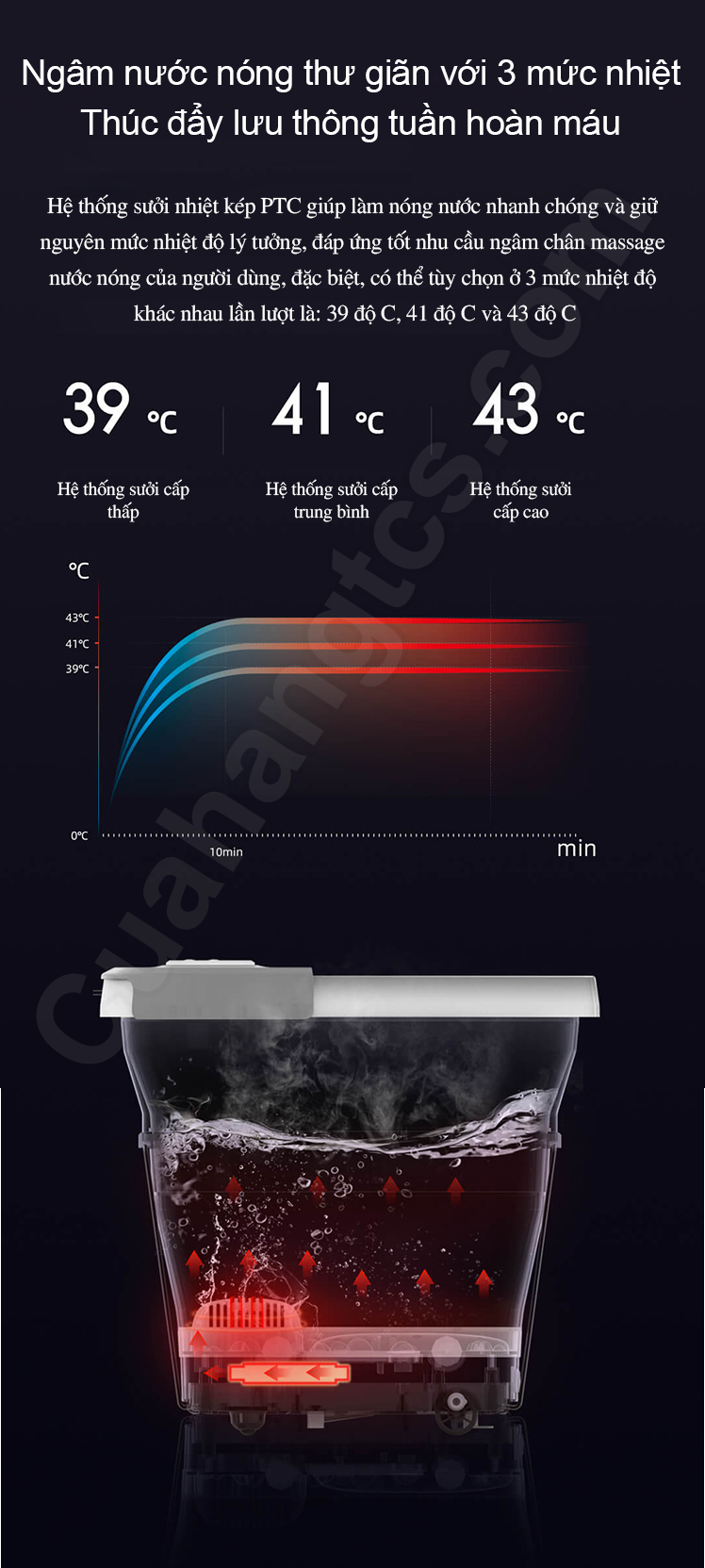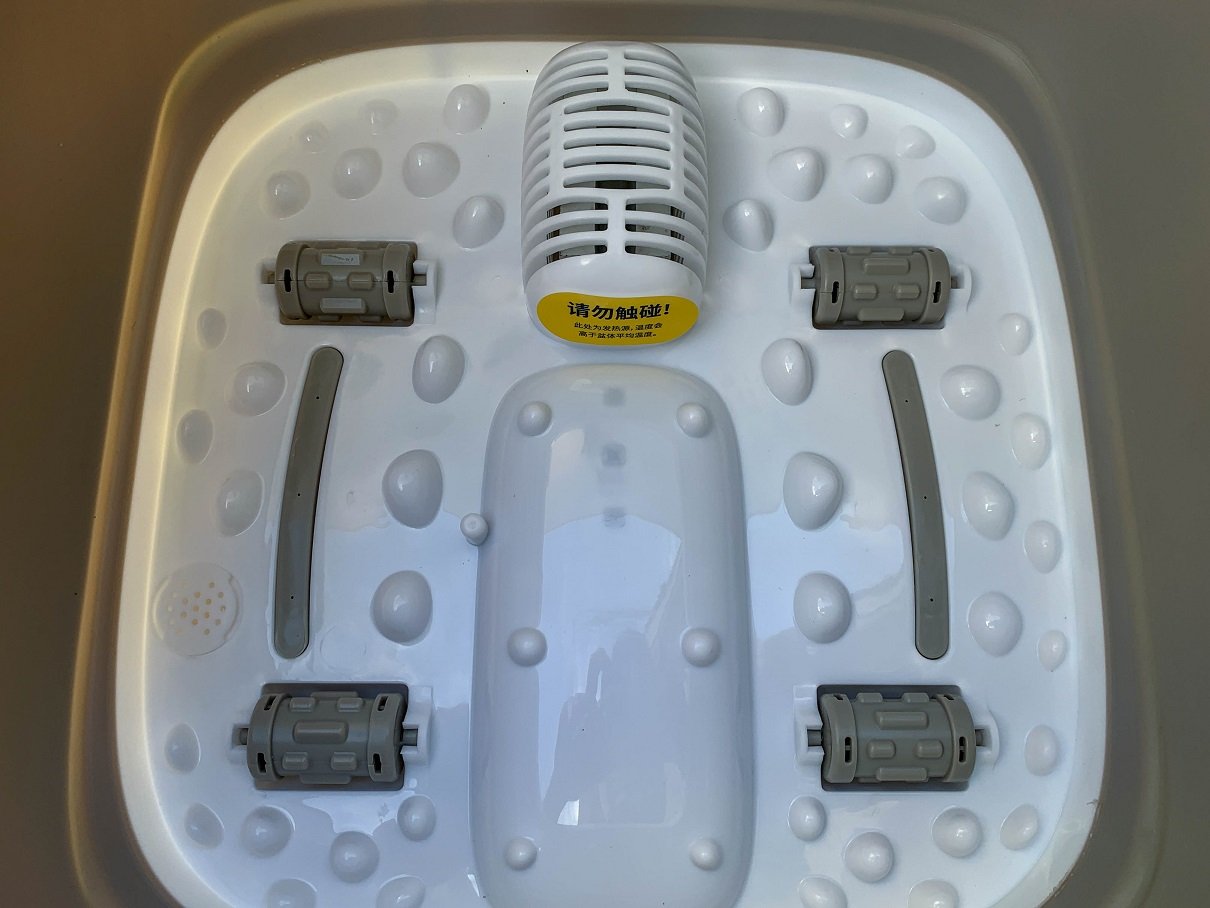 Phía dưới đáy của Chậu ngâm chân massage Xiaomi LJF001 được trang bị mô-đun làm nóng, cơ chế massage đa điểm, tạo bọt bong bóng và hệ thống massage thư giãn bằng con lăn độc đáo. Cụ thể, mô-đun làm nóng được tích hợp công nghệ sưởi ấm PTC kép giúp điều chỉnh và duy trì nhiệt độ ổn định trong suốt quá trình sử dụng với 3 mức nhiệt tùy chọn là 39°, 41° và 43°.