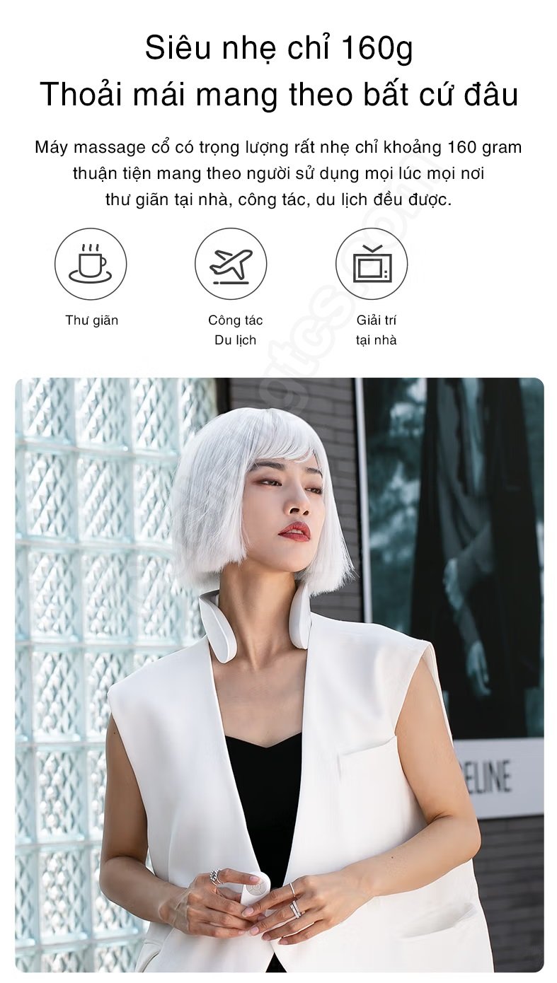 Là phiên bản máy matxa cổ tiếp theo đến từ thương hiệu Jeeback, G20 được đặc biệt cải tiến cả về hiệu quả massage xung điện EMS lẫn thiết kế đeo cổ vô cùng linh hoạt, không gây áp lực cho người dùng. Từ đó giúp giải quyết nhanh chóng các vấn đề cơ cứng vùng vai và cổ, giảm tình trạng đau đầu, chóng mặt,…thường thấy ở dân văn phòng, tài xế lái xe đường dài hay người thường phải ngồi lâu một tư thế và tập trung nhiều.