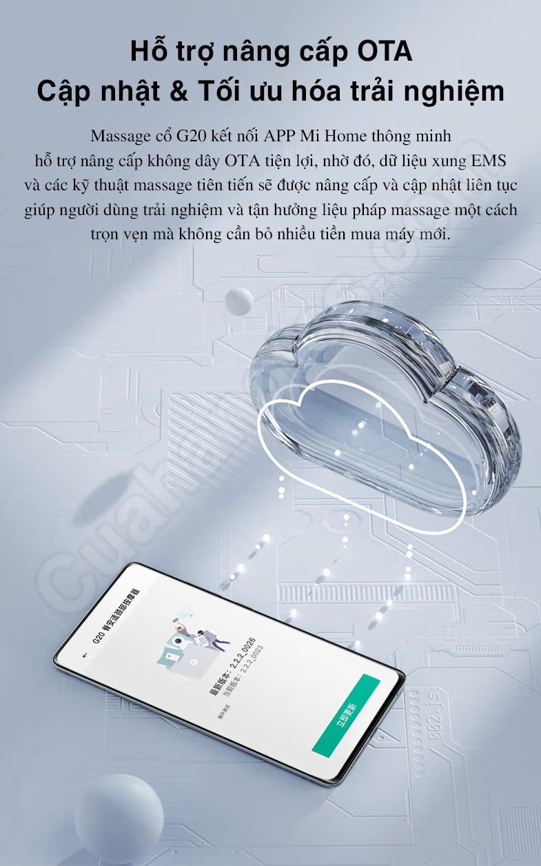 Đồng thời, chiếc máy mát xa cổ Jeeback còn được hỗ trợ nâng cấp trực tuyến OTA, tối ưu dữ liệu xung, giúp người dùng có thể tận hưởng được nhiều liệu pháp massage mới mà không cần phải mua máy mới. Cụ thể, người dùng chỉ cần kết nối với ứng dụng Mijia, máy massage sẽ được nâng cấp bằng chương trình cơ sở OTA với dữ liệu xung EMS và kỹ thuật massage sẽ được cập nhật và nâng cấp liên tục mang đến nhiều trải nghiệm mới mẻ hơn.