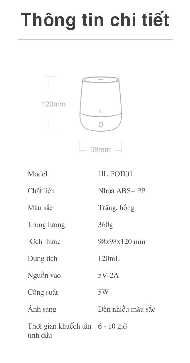 Máy tạo ẩm xông tinh dầu Xiaomi Happy Life HL HLEOD01 máy phun sương – Tech1 Store