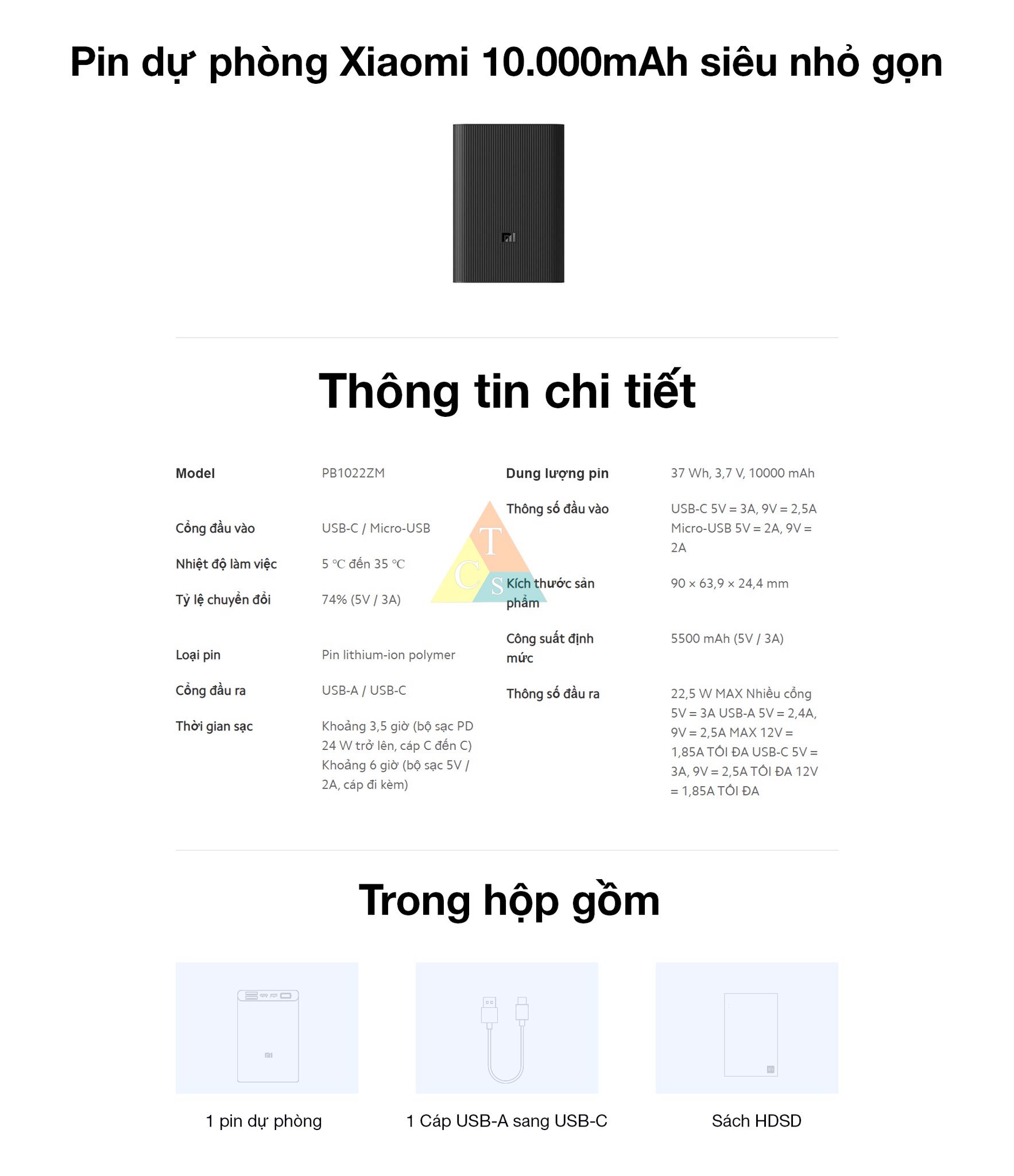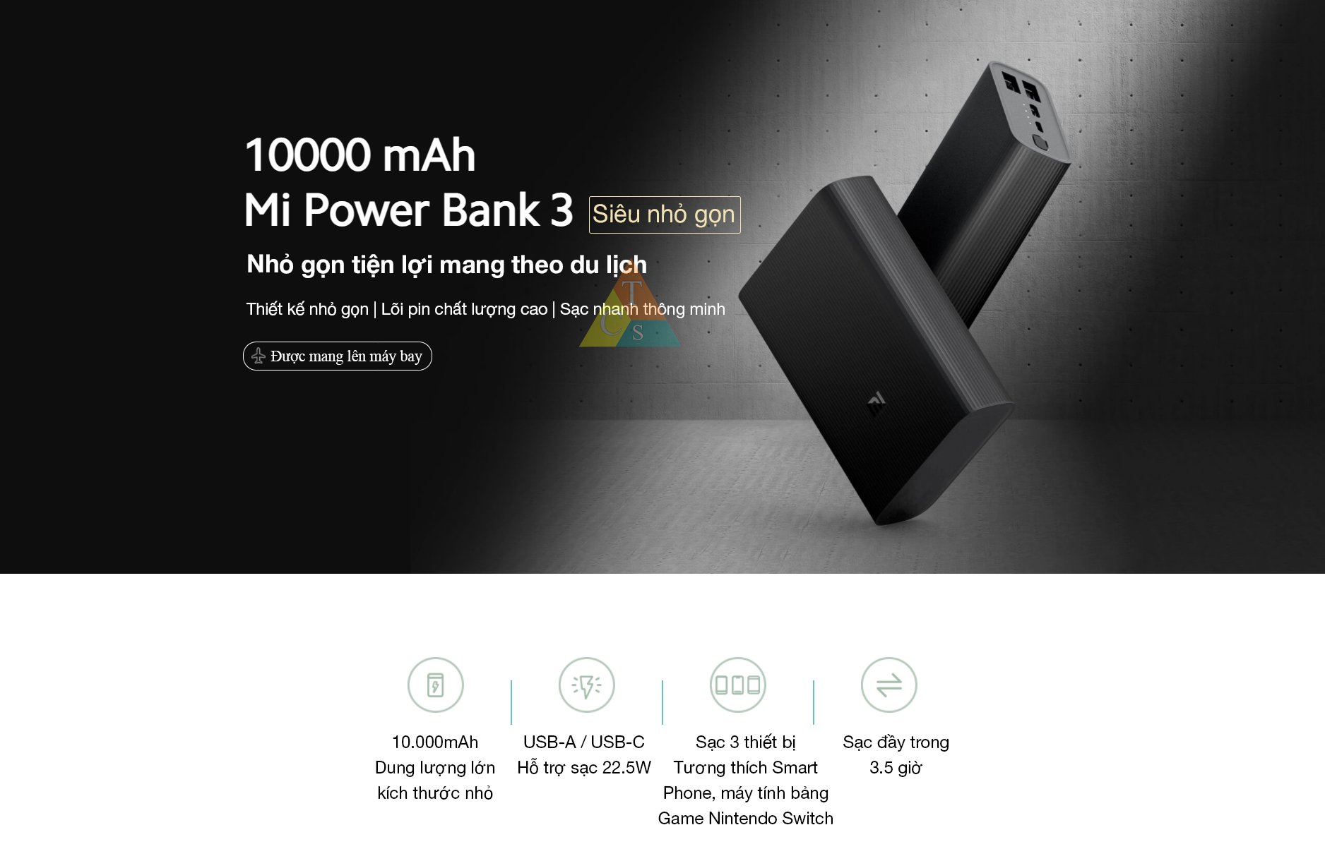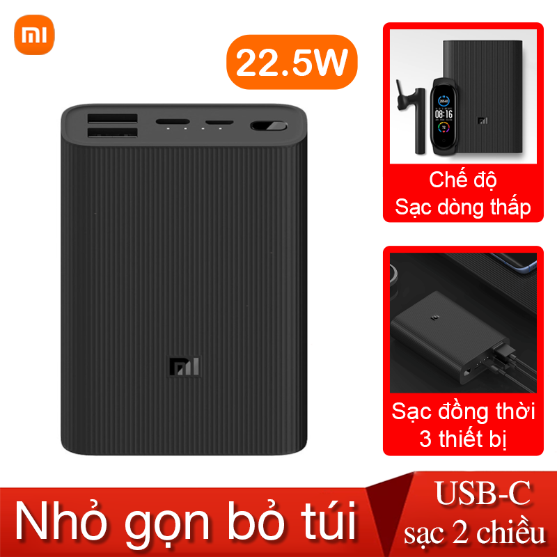 Sạc dự phòng 10000mAh Xiaomi Mi 3 Ultra Compact BHR4412GL với khả năng sạc nhanh 22.5w, sạc cho iphone, nhỏ gọn trong lòng bàn tay, sạc cùng lúc ra cho 3 thiết bị.
