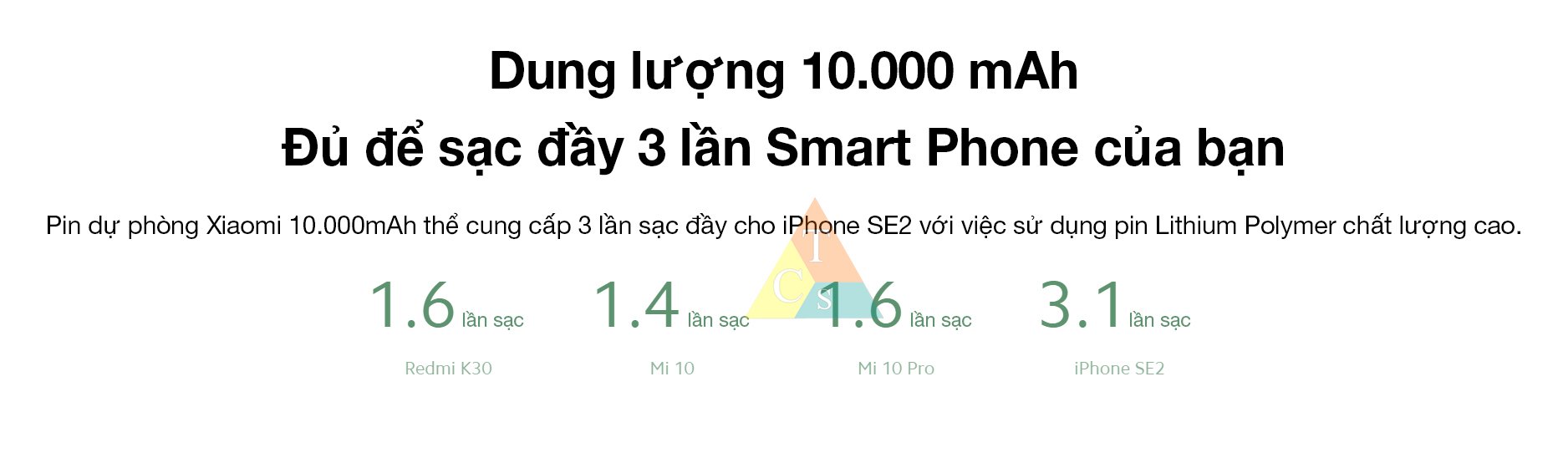 Pin dự phòng 10000mAh Mi 3 Ultra Compact BHR4412GL sử dụng công nghệ pin lithium ion polymer chất lượng cao. Theo số liệu từ Xiaomi, trung bình bộ sạc có thể nạp năng lượng tới hơn ba lần cho một chiếc điện thoại như iPhone SE 2. Bạn sẽ an tâm rằng thiết bị di động của mình luôn có nguồn năng lượng dự trữ ở cạnh bên.