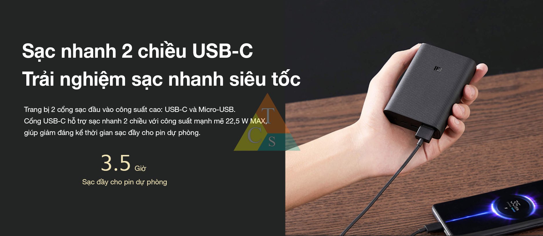 Cổng kết nối USB-C (Type-C) trên Mi 3 Ultra Compact BHR4412GL đem đến khả năng sạc nhanh hai chiều cho thiết bị. Trong đó, riêng việc nạp năng lượng vào trong bộ sạc có thể đạt công suất 22.5W nếu bạn kết nối với củ sạc nhanh thích hợp. Do đó, bạn chỉ cần phải chờ khoảng 3.5 giờ để Mi Ultra Compact tái tạo lại năng lượng để sẵn sàng đồng hành cùng bạn.