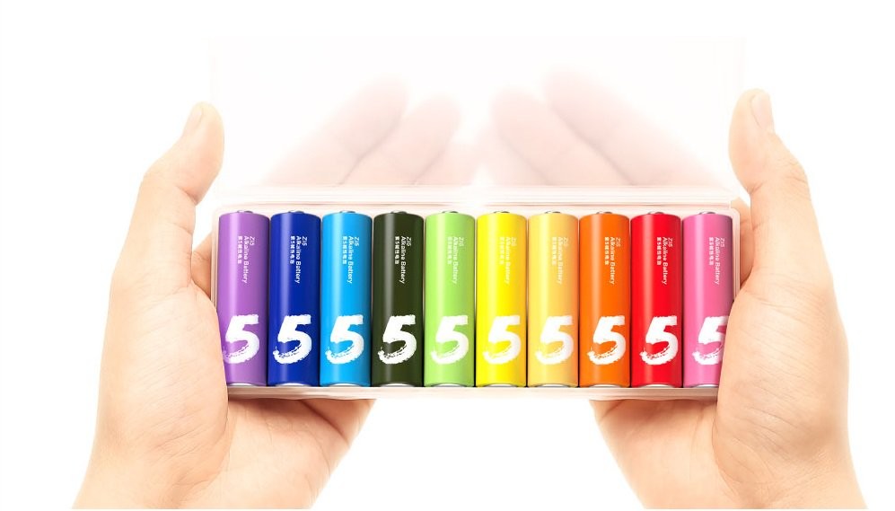 Sản phẩm bao gồm hộp 10 viên pin tiểu AA, thương hiệu Xiaomi. Lõi pin đến từ Maxell, nhà sản xuất pin nổi tiếng với chất lượng đã được khẳng định, nay Xiaomi hợp tác với Maxell cho ra hộp pin với đủ màu sắc như tên gọi của nó: Xiaomi Rainbow
