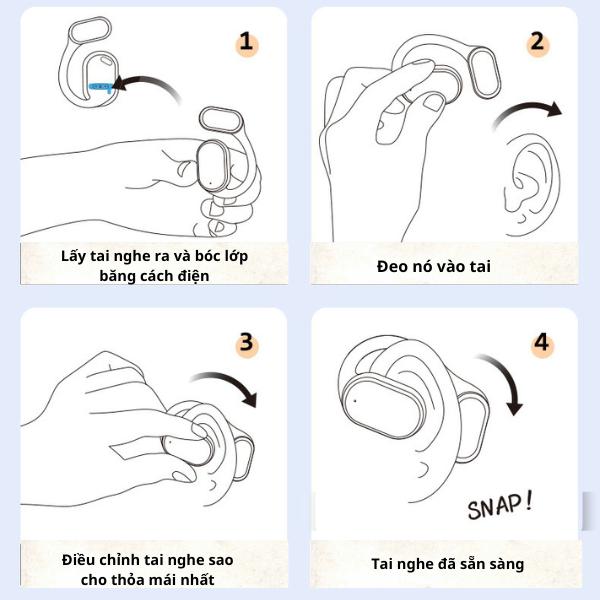 Cách đeo tai: Chọn đúng bên tai nghe, áp tai nghe vào vành tai đeo từ trên xuống dưới